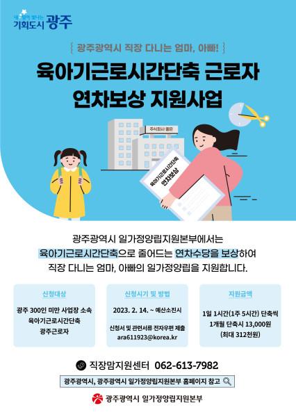 ¿ÃÇØ Áö¿ø ´ë»óÀº ±¤ÁÖ ¼ÒÀç 300ÀÎ ¹Ì¸¸ »ç¾÷Àå ¼Ò¼ÓÀ¸·Î, ¿ÃÇØ ¡®À°¾Æ±â ±Ù·Î½Ã°£ ´ÜÃà Á¦µµ¡¯¸¦ ÀÌ¿ëÇϰí À°¾Æ±â ±Ù·Î½Ã°£ ´ÜÃà ±Þ¿©¸¦ ¹Þ´Â ±Ù·ÎÀÚ´Ù.