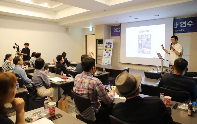 À̹ø ¿¬¼ö´Â º»Ã»¡¤Á÷¼Ó±â°ü¡¤±³À°Áö¿øÃ»¡¤Çб³¡¤¸¶À» µî Àü³²±³À° ÇöÀå¿¡¼ ¼Ò½ÄÀ» ÀüÇϰí ÀÖ´Â È«º¸ ±âÀÚ´Ü, º¸µµÀÚ·á ÀÛ¼ºÀÚ, SNS ¼Æ÷ÅÍÁîÀÇ ¿ª·®À» °ÈÇØ ¡®Àü³²±³À° ´ëÀüȯ¡¯ÀÇ °ø°¨´ë¸¦ È®»êÇϱâ À§ÇØ ¸¶·ÃµÆÀ¸¸ç ÃÑ 60¿© ¸íÀÌ Âü¿©Çß´Ù.