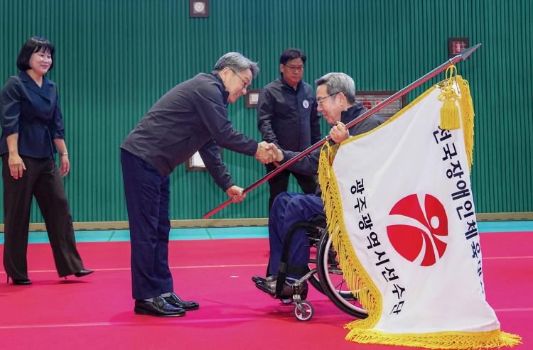 [ÇÁ·¹½ºÁ¸] ±¤ÁÖ Àå¾ÖÀÎüÀ° ¼±¼ö´ÜÀÌ ¡®Á¦45ȸ Àü±¹Àå¾ÖÀÎüÀ°´ëȸ¡¯¸¦ ¾ÕµÎ°í ÇʽÂÀÇ °¢¿À¸¦ ´ÙÁ³´Ù.