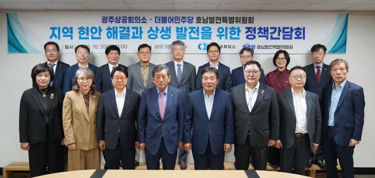 À̺´ÈÆ È£³²¹ßÀüƯÀ§ ¼ö¼®ºÎÀ§¿øÀå, ÇÑ»ó¿ø ±¤ÁÖ»ó°øÈ¸ÀÇ¼Ò È¸Àå°ú È£³²¹ßÀüƯÀ§ À§¿ø ¹× »ó°øÈ¸ÀÇ¼Ò °ü°èÀÚ µîÀÌ Âü¼®ÇÑ °£´ãȸ´Â Áö¿ª ±â¾÷µéÀÇ »ý»ýÇÑ ÇöÀå ¸ñ¼Ò¸®¸¦ ûÃëÇϰí, Áö¿ª °æÁ¦¿Í °ü·ÃÇÑ ½ÇÁúÀûÀÎ ³íÀÇ¿Í °æÁ¦ Ȱ¼ºÈ¸¦ À§ÇÑ ±¸Ã¼ÀûÀÎ ¹æ¾È ¸ð»öÀ» À§ÇØ ¸¶·ÃµÈ ÀÚ¸®´Ù.