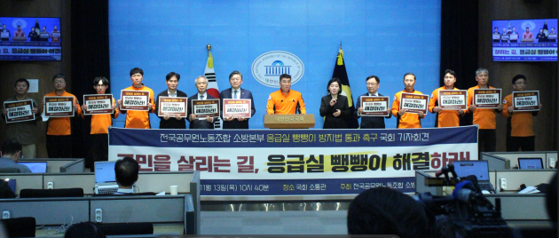 Àü±¹°ø¹«¿ø³ëµ¿Á¶ÇÕ ¼Ò¹æº»ºÎ(º»ºÎÀå ±Ç¿µ°¢)¿Í ¾çºÎ³²¡¤±èÀ± ÀÇ¿øÀº Áö³ 13ÀÏ ¿ÀÀü 10½Ã 40ºÐ ±¹È¸ ¼ÒÅë°ü¿¡¼ °øµ¿ ±âÀÚȸ°ßÀ» ¿°í ¡®ÀÀ±Þ½Ç »±»±ÀÌ ¹æÁö¹ý¡¯ÀÇ Á¶¼ÓÇÑ ±¹È¸ Åë°ú¸¦ ¿äûÇß´Ù.
