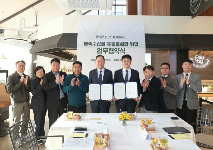 ¸íÇö°ü ÇØ³²±º¼ö´Â ¡°À̹ø ¾÷¹«Çù¾àÀº ³ó¾îÃ̼öµµ ÇØ³²ÀÇ ¸ÀÀÖ°í °Ç°ÇÑ ¸Ô°Å¸®°¡ ´ëÇѹα¹À» ³Ñ¾î ¼¼°è ½ÃÀåÀ¸·Î ÁøÃâÇÏ´Â Áß¿äÇÑ Ãâ¹ßÁ¡¡±À̶ó¸ç ¡°¾ÕÀ¸·Îµµ Áö¿ª ³ó»ê¹°ÀÇ °æÀï·Â °È¿Í ÆÇ·Î È®´ë¸¦ À§ÇØ ´Ù¾çÇÑ Çù·ÂÀ» À̾°Ú´Ù¡±°í ¹àÇû´Ù.