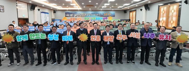 | ³ªÁֽô Áö³ 11¿ù 4ÀÏ ½Ãû ´ëȸÀǽǿ¡¼ ¡®ÀΰøÅÂ¾ç ¿¬±¸½Ã¼³ À¯Ä¡ ³ªÁֽùÎÃßÁøÀ§¿øÈ¸¡¯ Ãâ¹ü½ÄÀ» °®°í ³ªÁÖ¸¦ ¹Ì·¡ ûÁ¤¿¡³ÊÁö »ê¾÷ÀÇ Áß½ÉÁö·Î µµ¾à½Ã۱â À§ÇÑ ¹ü½Ã¹Î À¯Ä¡ Ȱµ¿¿¡ ³ª¼¹´Ù. [»çÁø Àü¶ó³²µµ ³ªÁÖ½Ã] |
