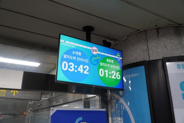 ¶Ç ±¤ÁÖµµ½Ãöµµ 1È£¼± »ó¹«¿ª¿¡¼´Â ½Ç½Ã°£ ¿Â÷ µµÂø½Ã°£ ¾È³» ½Ã½ºÅÛÀ» ¼³Ä¡, ½Ã¹ÎÀÌ ½ÇÁ¦ À̵¿ °úÁ¤¿¡¼ Á¤º¸ Á¤È®¼º°ú ÆíÀǼºÀ» È®ÀÎÇϵµ·Ï Çß´Ù.