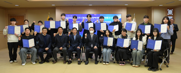 [ÇÁ·¹½ºÁ¸] (Àç)ºû°íÀ»ÀåÇÐÀç´Ü(ÀÌ»çÀå °±âÁ¤ ±¤ÁÖ±¤¿ª½ÃÀå)Àº 17ÀÏ ½Ãû ºñÁî´Ï½º·ë¿¡¼ ¡®2025³â ÇϹݱ⠺û°íÀ»ÀåÇÐÀç´Ü ÀåÇÐÁõ¼ ¼ö¿©½Ä¡¯À» ¿°í, ´ëÇ¥·Î Âü¼®ÇÑ Çлý 20¸í¿¡°Ô ÀåÇÐÁõ¼¸¦ Àü´ÞÇß´Ù.