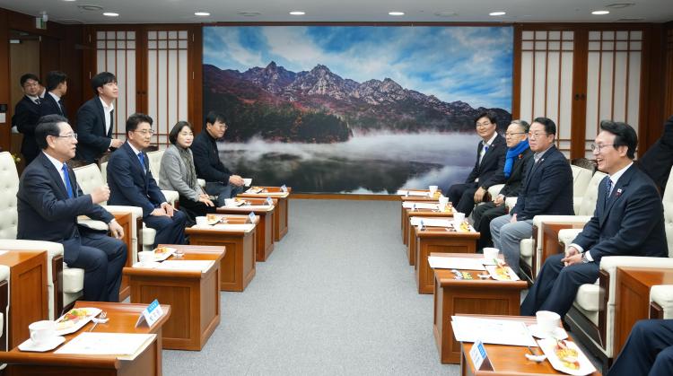 | ±è¿µ·Ï Àü¶ó³²µµÁö»ç°¡ 20ÀÏ µµÃ» ±è´ëÁß°´ç¿¡¼ ¿¸®´Â ¡®K-±¹Á¤¼³¸íȸ¡¯ Ưº°°¿¬À» À§ÇØ ³»¹æÇÑ ±è¹Î¼® ±¹¹«ÃѸ®¿Í ȯ´ãÀ» ³ª´©°í ÀÖ´Ù. |