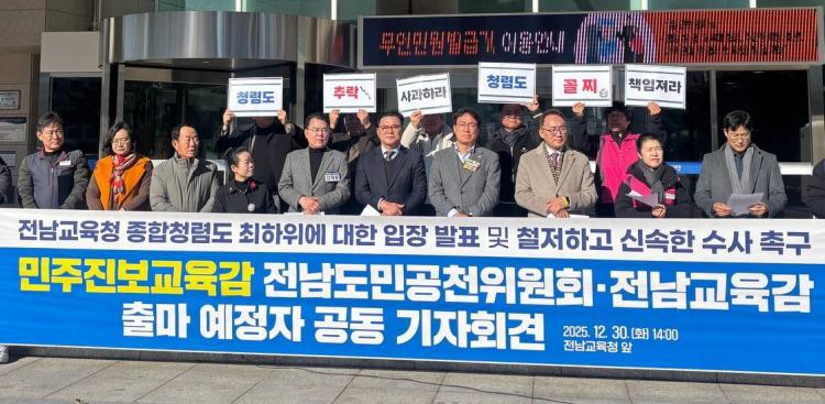 [ÇÁ·¹½ºÁ¸] ¹ÎÁÖÁøº¸±³À°°¨ Àü³²µµ¹Î°øÃµÀ§¿øÈ¸´Â 30ÀÏ Àü¶ó³²µµ±³À°Ã» ¾Õ¿¡¼ ¡®Àü³²±³À°Ã» Á¾ÇÕû·Åµµ ÃÖÇÏÀ§¿¡ ´ëÇÑ ÀÔÀå ¹ßÇ¥ ¹× öÀúÇÏ°í ½Å¼ÓÇÑ ¼ö»ç Ã˱¸¡¯ ±âÀÚȸ°ßÀ» °³ÃÖÇß´Ù.