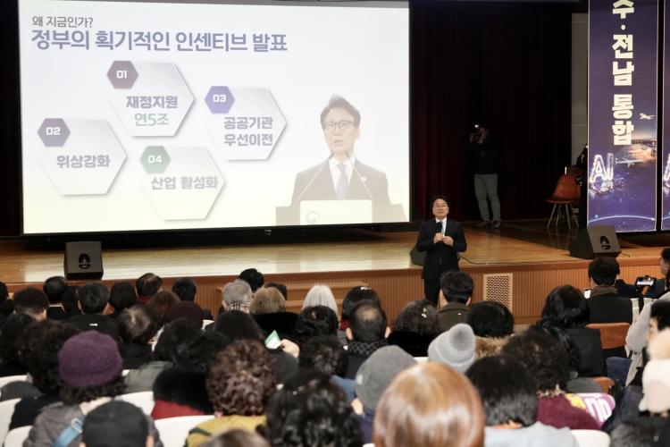 ° ½ÃÀåÀº ¡°¸ðµç ºÒÀÌÀÍÀº ¹èÁ¦ÇÏ°í ±¹ÀÚ Áö¿øÀº ´õ Ưº°ÇÏ°Ô Çϰڴٴ °ÍÀÌ ±¤ÁÖÀü³² ÅëÇÕÀÇ ´ë¿øÄ¢¡±À̶ó¸ç ¡°¿¬ 5Á¶ ¿ø¿¡ ´ÞÇÏ´Â ÀçÁ¤ ¹× °ø°ø±â°ü ¿ì¼± Áö¿ø, Ưº°½Ã ÁöÀ§ ºÎ¿© µî Á¤ºÎÀÇ ÀüÆøÀûÀÎ ÀçÁ¤ Áö¿ø°ú ½Ãµµ¹ÎÀÇ ¿°¿øÀÌ Çѵ¥ ¾î¿ì·¯Áú ¶§ 3Àü4±â ÇàÁ¤ÅëÇÕÀº ¼º°øÇÒ ¼ö ÀÖ´Ù¡±°í ¼³¸íÇß´Ù.