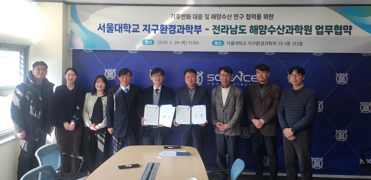 [ÇÁ·¹½ºÁ¸] Àü¶ó³²µµÇؾç¼ö»ê°úÇпø(¿øÀå ±èÃæ³²)°ú ±¹¸³´ëÇйýÀÎ ¼¿ï´ëÇб³ Áö±¸È¯°æ°úÇкÎ(ÇкÎÀå ¹Ú·ÏÁø)´Â 29ÀÏ ¼¿ï´ëÇб³¿¡¼ ¡®±âÈĺ¯È ´ëÀÀ Áö¼Ó °¡´ÉÇÑ ÇØ¾ç¼ö»ê ¿¬±¸ ü°è ±¸Ã࡯À» À§ÇÑ ¾÷¹«Çù¾à(MOU)À» ü°áÇß´Ù.