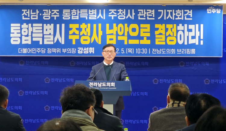 [ÇÁ·¹½ºÁ¸] °¼ºÈÖ ´õºÒ¾î¹ÎÁÖ´ç Á¤Ã¥À§ºÎÀÇÀåÀº 5ÀÏ Àü³²µµÀÇȸ¿¡¼ ±âÀÚȸ°ßÀ» ¿°í, Àü³²¡¤±¤ÁÖ ÇàÁ¤ÅëÇÕÀÇ ÇÙ½É ÀïÁ¡ÀÎ ÅëÇÕ Æ¯º°½Ã ÁÖû»ç¸¦ ³²¾ÇÀ¸·Î ¸íÈ®È÷ °áÁ¤ÇØ¾ß ÇÑ´Ù°í °ÇÏ°Ô ÁÖÀåÇß´Ù.