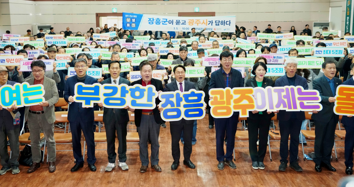°±âÁ¤ ±¤ÁÖ½ÃÀåÀº ±¤ÁÖÀü³² ÅëÇÕ ÃßÁø»óȲ°ú ÇâÈÄ ÀÏÁ¤, Á¤ºÎ Áö¿ø ƯÀü(Àμ¾Æ¼ºê) µîÀ» ¼³¸íÇϸç ÅëÇÕ ÀÇÁö¸¦ ¹àÇû´Ù. À̾î ÀåÈﱺ°ú °ü·ÃÇÑ Æ¯º°¹ý¾È Ư·ÊÁ¶Ç×À» ¼Ò°³Çϸç Áö¿ª ¸ÂÃãÇü ¹ßÀü Àü·«À» Á¦½ÃÇß´Ù.
