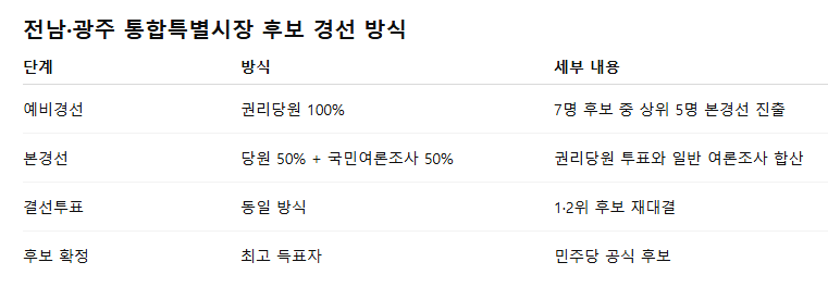 [ÇÁ·¹½ºÁ¸] ´õºÒ¾î¹ÎÁÖ´çÀÇ Àü³²¡¤±¤ÁÖ ÅëÇÕÆ¯º°½ÃÀå Èĺ¸ ¼±ÃâÀ» À§ÇÑ °æ¼±ÀÌ 7ÆÄÀü ±¸µµ·Î º»°ÝÈÇß´Ù.