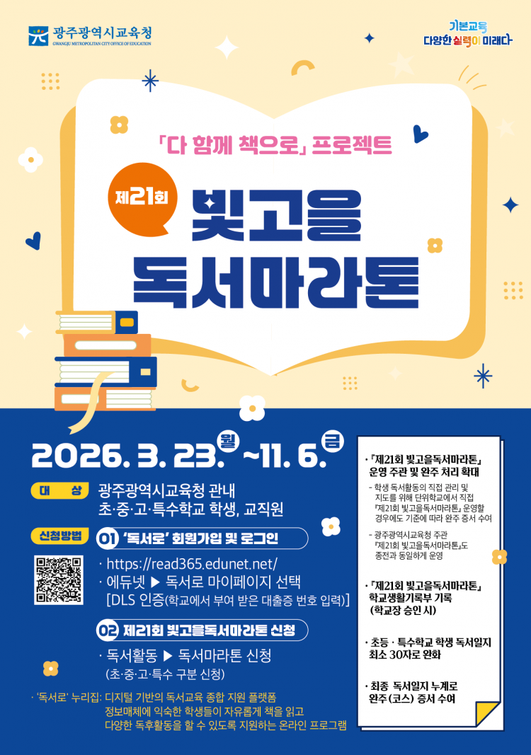 [ÇÁ·¹½ºÁ¸] ±¤Áֽñ³À°Ã»(±³À°°¨ ÀÌÁ¤¼±)Àº ¡®´Ù ÇÔ²² Ã¥À¸·Î¡¯ ÇÁ·ÎÁ§Æ® ½Çõ°ú ¸ÅÀÏ µ¶¼ÇÏ´Â Çб³ ¹®È¸¦ Á¶¼ºÇϱâ À§ÇØ ¿À´Â 11¿ù 6ÀϱîÁö ¡®Á¦21ȸ ºû°íÀ»µ¶¼¸¶¶óÅæ¡¯À» ¿î¿µÇÑ´Ù.