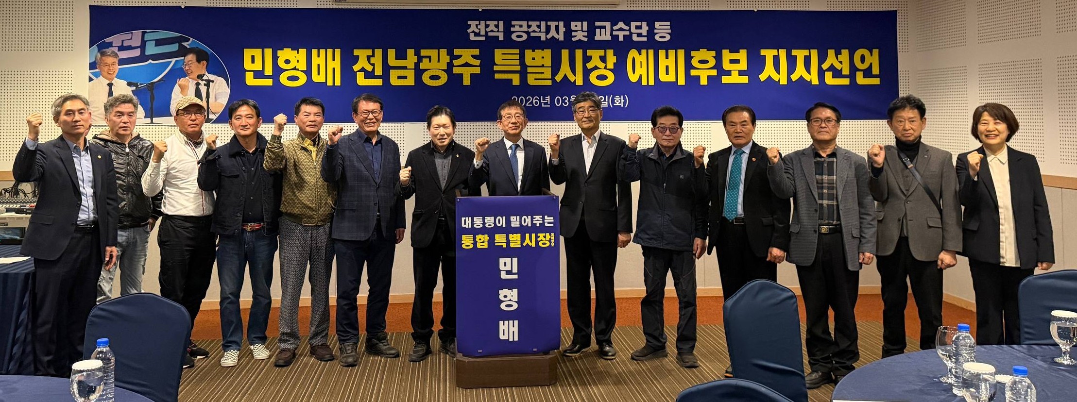 ¹ÎÇü¹è °æ¼±»ç¹«¼Ò ¹Î½ÉÄ·ÇÁ´Â 26ÀÏ º¸µµÀڷḦ ³»°í ¡°Àü³²°ú ±¤ÁÖÁö¿ª ÀüÁ÷ °øÁ÷ÀÚ¿Í ±³¼ö 125 ÀÎÀÌ Áö³ 24 ÀÏ ±¤ÁÖ È¦¸®µ¥ÀÌÀÎÈ£ÅÚ ÄÁº¥¼ÇȦ¿¡¼ ¹ÎÇü¹è Àü³²±¤ÁÖÆ¯º°½ÃÀå ¿¹ºñÈĺ¸ ÁöÁö¸¦ ¼±¾ðÇß´Ù¡±°í ¹àÇû´Ù.