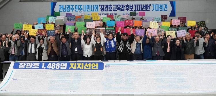 ¡®Àü³²±¤ÁÖ ¹ÎÁֽùλçȸ Àå°üÈ£ Èĺ¸ ÁöÁö ÃßÁøÀ§¿øÈ¸(ÀÌÇÏ ÃßÁøÀ§)¡¯´Â 3¿ù 30ÀÏ(¿ù) ¿ÀÈÄ 2½Ã ±¤ÁÖ YMCA ¹«Áø°ü¿¡¼ ±âÀÚȸ°ßÀ» ¿°í, ½Ã¹Î 1,488¸íÀÌ µ¿ÂüÇÑ ÁöÁö ¼±¾ð¹®À» ¹ßÇ¥Çß´Ù.