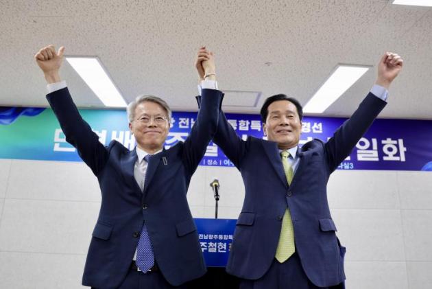 [ÇÁ·¹½ºÁ¸] ´õºÒ¾î¹ÎÁÖ´ç Àü³²±¤ÁÖÅëÇÕÆ¯º°½ÃÀå °æ¼± Èĺ¸ÀÎ ¹ÎÇü¹è ±¹È¸ÀÇ¿ø ( ±¤ÁÖ ±¤»ê±¸À» ) °ú ÁÖöÇö ±¹È¸ÀÇ¿ø ( Àü³² ¿©¼ö°© ) ÀÌ 1 ÀÏ ¹ÎÇü¹è È帷Π´ÜÀÏȸ¦ ¼±¾ðÇÏ°í °¡Ä¡ ¡¤ Á¤Ã¥¿¬´ë¿¡ ±â¹ÝÇÑ ÅëÇÕÆ¯º°½Ã ºñÀüÀ» ÇÔ²² ¼³°èÇØ ³ª°¡°Ú´Ù°í ¹àÇû´Ù .