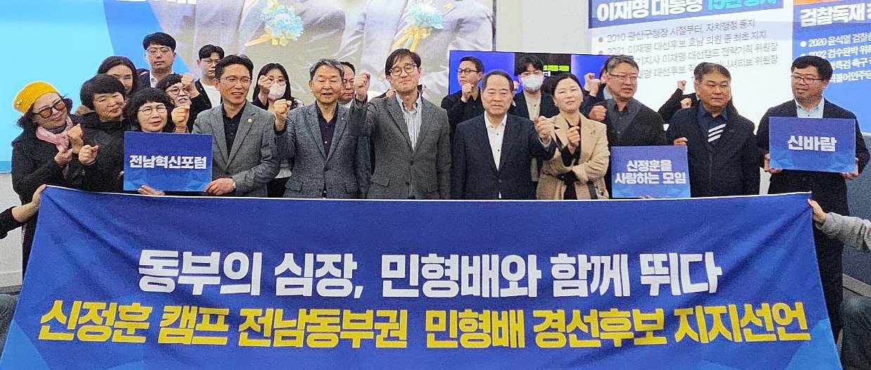 [ÇÁ·¹½ºÁ¸] ´õºÒ¾î¹ÎÁÖ´ç Àü³²±¤ÁÖÅëÇÕÆ¯º°½ÃÀå Èĺ¸ °á¼±À» ¾ÕµÎ°í , ½ÅÁ¤ÈÆ Àü Èĺ¸ Ä·ÇÁÀÇ ÇÙ½É Àλçµé°ú Àü³² µ¿ºÎ±Ç Áö¿ª Á¶Á÷ÀÌ 8 ÀÏ ¹ÎÇü¹è Èĺ¸ÀÇ °æ¼±»ç¹«¼ÒÀÎ ¹Î½ÉÄ·ÇÁ¿¡ Àü°Ý ÇÕ·ùÇß´Ù .