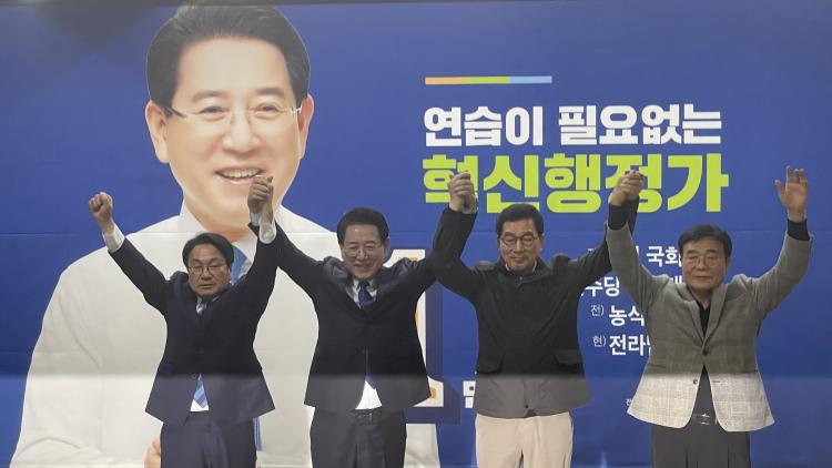 [ÇÁ·¹½ºÁ¸] ¹ÎÁÖ´ç Àü³²±¤ÁÖÆ¯º°½ÃÀå °æ¼±¿¡ Âü¿©Çß´ø ½ÅÁ¤ÈÆ ±¹È¸ÀÇ¿ø°ú °±âÁ¤ ±¤ÁÖ±¤¿ª½ÃÀåÀÌ ±è¿µ·Ï ¿¹ºñÈĺ¸¿¡ ´ëÇÑ ÁöÁö¸¦ 9ÀÏ Àü°Ý ¼±¾ðÇß´Ù.