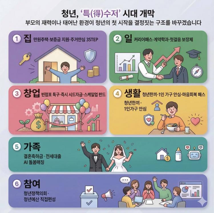 ½ÅÈ¥¡¤À°¾Æ ¹× û³âÀÚÄ¡ ºÐ¾ß¿¡¼´Â ¡®Ã»³â°áÁ¤Á¤ºÎ¡¯ ±¸»óÀ» Á¦½ÃÇß´Ù. °áÈ¥ Áغñ ºñ¿ë ºÎ´ãÀ» ÁÙÀÌ´Â ¡®½ºµå¸Þ Á¤ÂûÁ¦ ¹Ù¿ìó¡¯¿Í AI ±â¹Ý À°¾Æ µ¹º½ ¸ÅĪ Ç÷§ÆûÀ» µµÀÔÇϰí, û³â»ç¾÷ ¿¹»ê 100%¸¦ û³âÀÌ Á÷Á¢ Æí¼ºÇÏ´Â ¡®Ã»³â¿¹»êÁ¦¡¯¿Í ¡®Àü³²±¤ÁÖû³âÁ¤Ã¥ÀÇȸ¡¯ »ó¼³È¸¦ ÃßÁøÇÏ°Ú´Ù°í ¹àÇû´Ù.