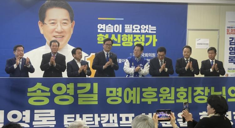 [ÇÁ·¹½ºÁ¸] ±è¿µ·Ï ¹ÎÁÖ´ç Àü³²±¤ÁÖÆ¯º°½ÃÀå ¿¹ºñÈĺ¸ÀÇ ¸í¿¹ ÈÄ¿øÈ¸ÀåÀ» ¸ÃÀº ¼Û¿µ±æ Àü ¹ÎÁÖ´ç ´ëÇ¥°¡ 11 ÀÏ ±è ¿¹ºñÈĺ¸ÀÇ ¼±°Å »ç¹«½ÇÀ» ã¾Æ ±è ¿¹ºñÈĺ¸¿¡ ´ëÇÑ ÁöÁö¿Í ¿¬´ë¸¦ ¼±¾ðÇß´Ù.