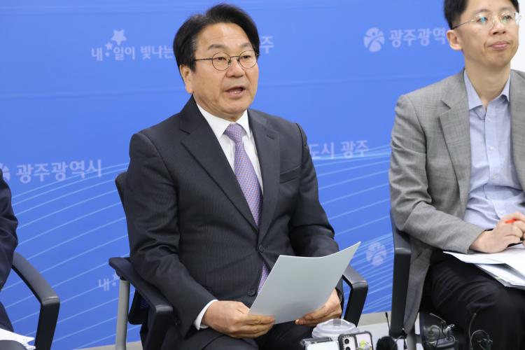 [ÇÁ·¹½ºÁ¸] °±âÁ¤ ±¤ÁÖ½ÃÀåÀº 21ÀÏ ¿ÀÀü ½Ãû¿¡¼ ±âÀÚµé°ú Â÷´ãȸ¸¦ ¿°í ÀÓ±â Á¾·á¸¦ ¾ÕµÐ ½ÃÁ¡¿¡¼ ±¤ÁÖ½ÃÁ¤ÀÇ ÁÖ¿ä Çö¾È°ú ¸¶¹«¸® °úÁ¦¸¦ Á¦½ÃÇß´Ù.